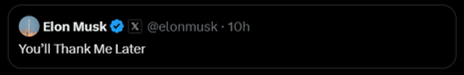 - 09/08/2025 – (1) Elon Musk on X: “You’ll Thank Me Later” / X